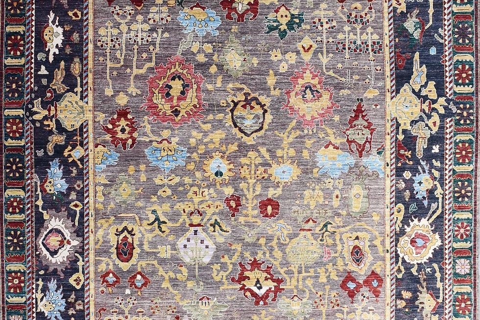 10x14 ft Wild Harshang Rug | Brown Charcoal Green Peach Color | Dining Room Rug