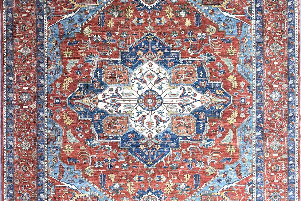 12x15 ft Large Red Serapi Rug - Vintage Color Rug, Red/Blue & Denim Colors - Pal